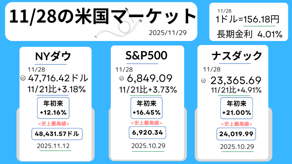 先週【11/24-28】の米国マーケット日々の動き